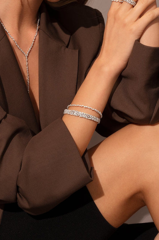 APM Triple Line Paved Open Cuff - Pink Silver RB3488OX