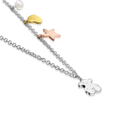 Tous Silver Sweet Dolls Necklace with Gold Vermeil, rose Gold Vermeil and Pearl 818022550