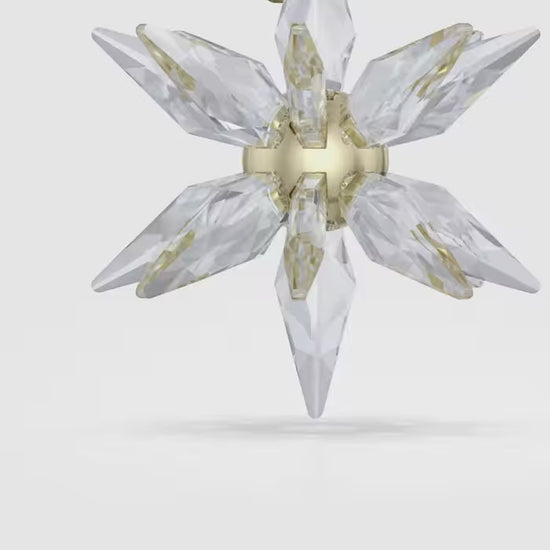 Create a festive story full of stars with this Swarovski Annual Edition 3D Ornament. The glittering motif delivers a striking example of savoir-faire with a star-shaped design that features 393 light-catching facets and a champagne gold-tone metal centre for added radiance. The star is suspended from a white grosgrain ribbon with a 2025 engraving on the tag. Perfect for hanging in a window, or on your tree and casting a magical light over your holiday décor. Decoration object. Not a toy. Not suitable for children under 15.
