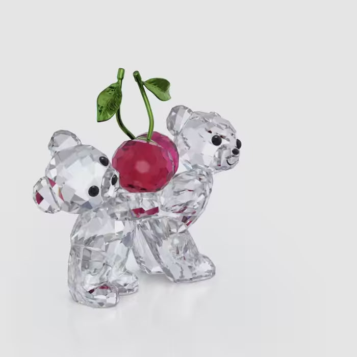 This playful figurine is a new member of our iconic Kris Bear collection, which has been delighting collectors since 1993. The design is crafted with 1,169 facets and showcases two bears, each holding a cherry. With its bright touches of red and green and luminous lacquered metal accents, this piece would make a fantastic gift, reflecting the importance of strong bonds and togetherness forever. Decoration object. Not a toy. Not suitable for children under 15.