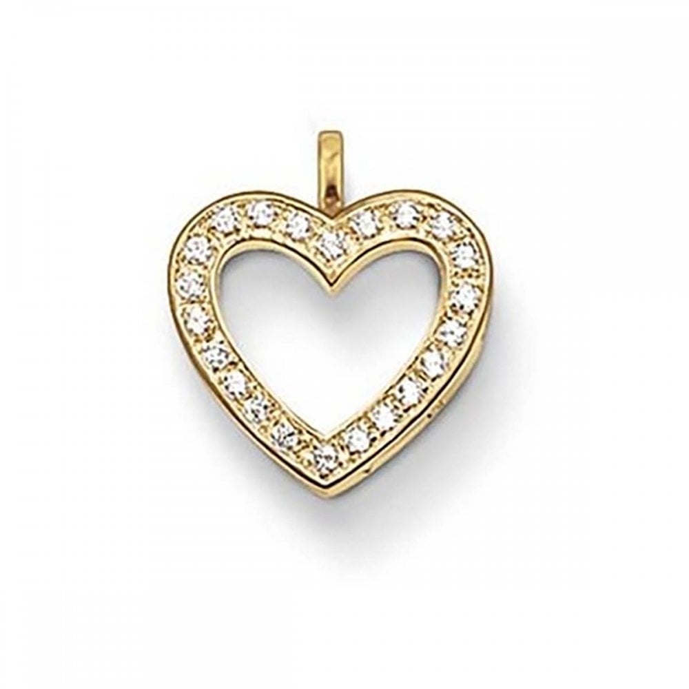 Thomas Sabo Glam And Soul Sterling Silver White Zirconia 18K Gold Plated Open Heart Pendant. PE616-414-14