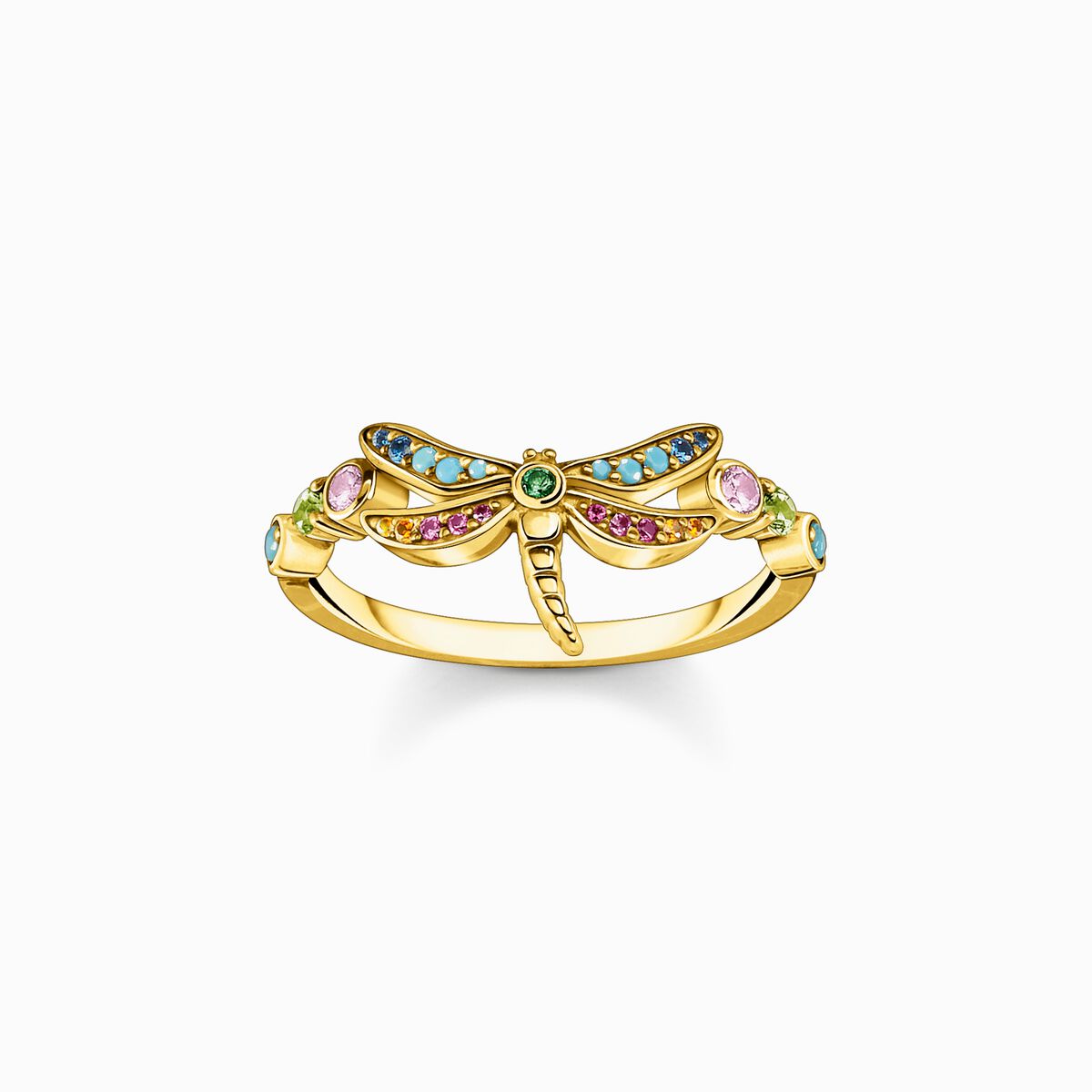 Thomas Sabo Silver Ring Gold-plated dragonfly with coloured stones TR2383-315-7-58, Size58